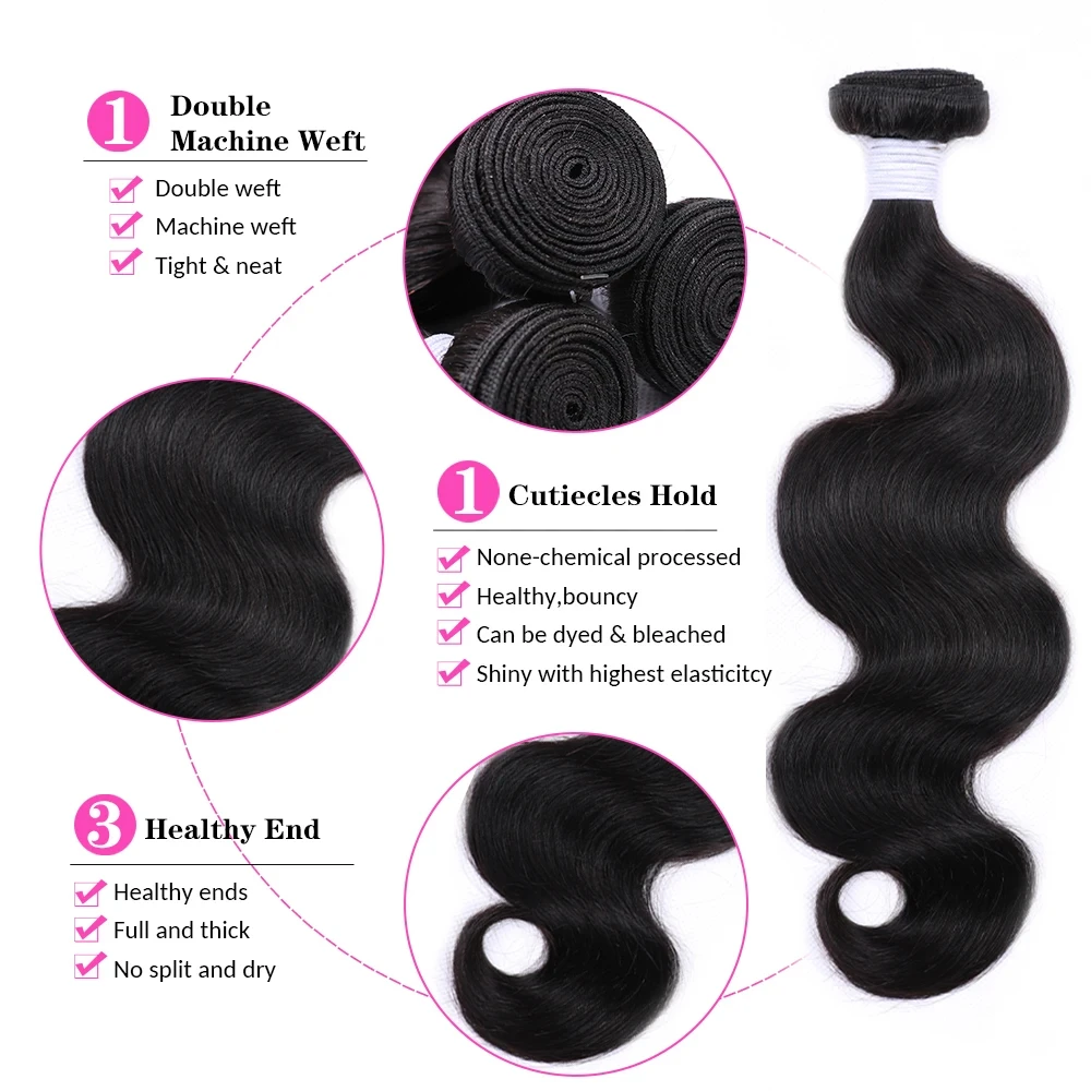Real Hair Wig Hair Styling Hair Extension Body Wave Human Hair Weaves Bundle Deals Human Hair Extensions Natural & Jet Black